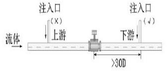 5)电磁流量计测量不同介质的混合液体时,混合点与流量计的距离至少要大于30D.