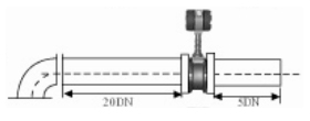 3、弯管的安装 如果流量计的前端有90°弯头或T型接头,要保证流量计的前直管段≥15D,后直管段≥5D | | |||||||||||